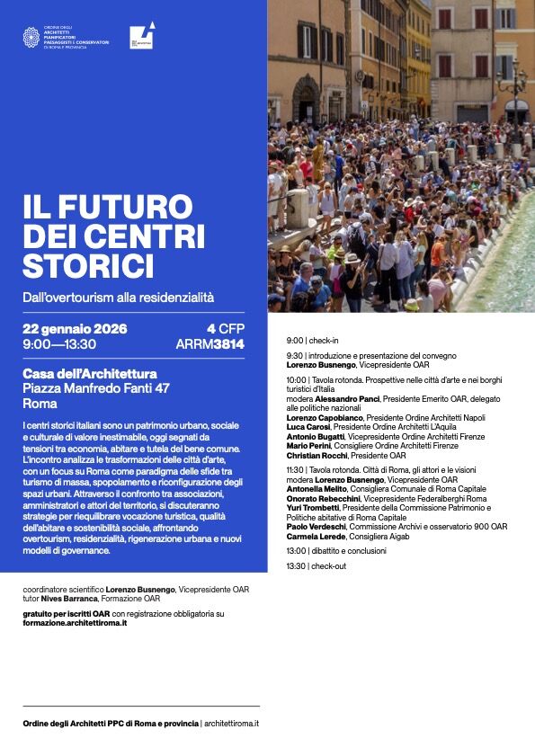 Grazie all’Ordine degli Architetti di Roma per averci coinvolto in un dibattito appassionato e appassionante sul futuro dei centri storici toccando temi di cui si dibatte da mesi come residenzialità e overtourism.