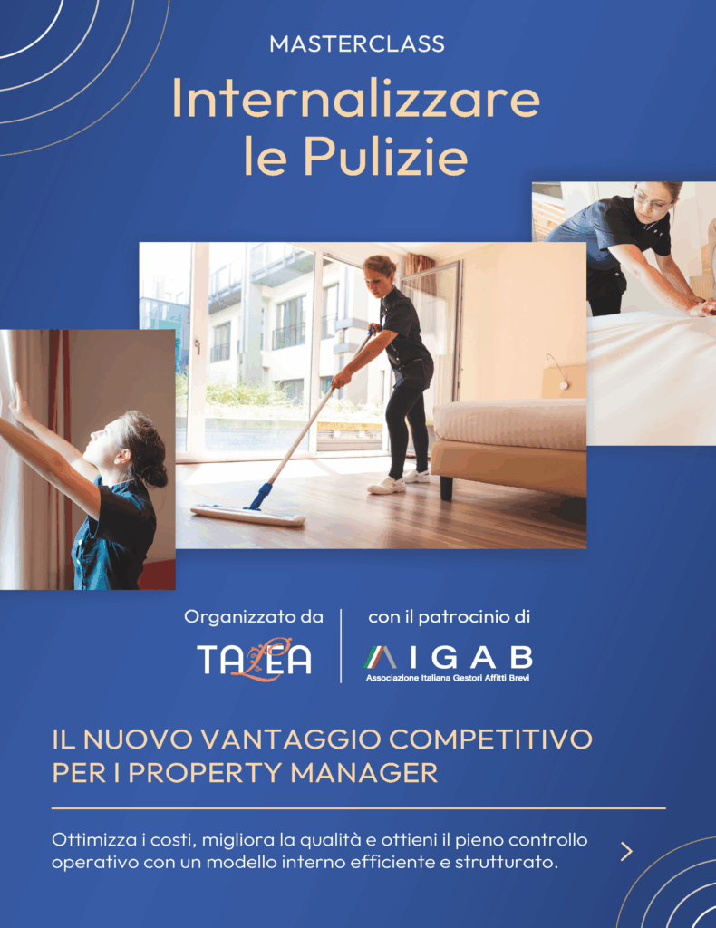 La masterclass si rivolge a property manager, gestori e professionisti del settore dell’ospitalità o che desiderano strutturare o migliorare un modello interno di pulizie.