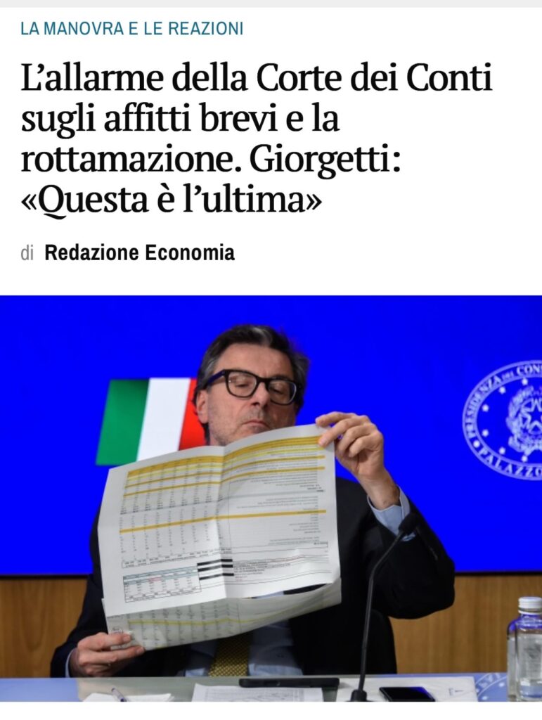 Fonte: Corriere della Sera: “La Corte dei Conti torna ad «ammonire» il governo. Dopo lo stop al progetto per il Ponte di Messina, questa volta nel mirino dei giudici contabili finisce la manovra di governo, in particolare le norme sugli affitti brevi e sulla rottamazione delle cartelle esattoriali. I rilievi sono stati mossi nel corso dell’audizione di fronte alle commissioni bilancio di Camera e Senato. Sugli affitti brevi i magistrati della Corte sottolineano che «la differenza potrebbe incidere negativamente incentivando il fenomeno delle locazioni brevi non dichiarate» vale a dire in nero, afferma il presidente della Corte Mauro Orefice”.